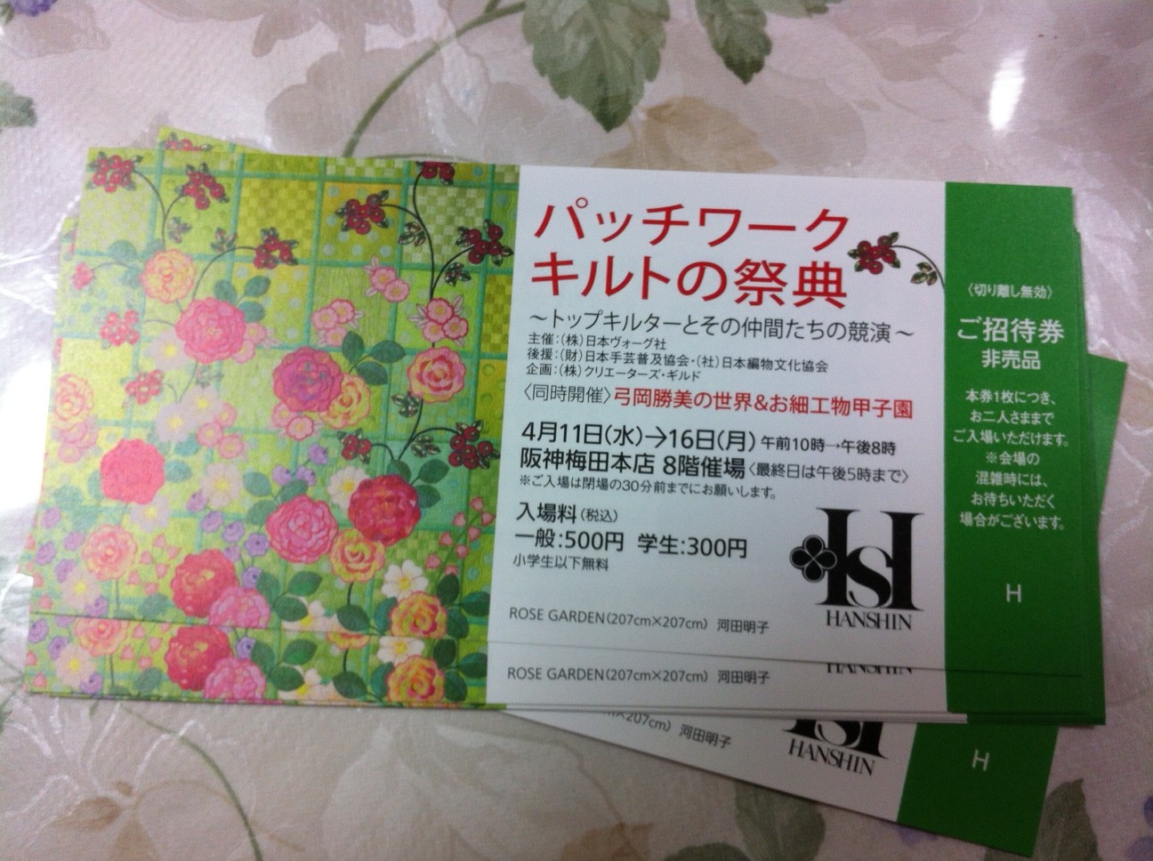 「パッチワークキルトの祭典」の招待券。
