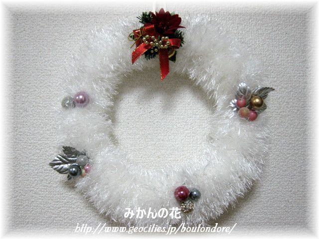 これはストローレイで作ったふわふわのクリスマスリースです。