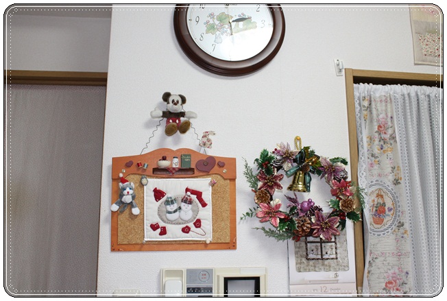 それからこれもリビングの壁右のリースは友達の手作りです
