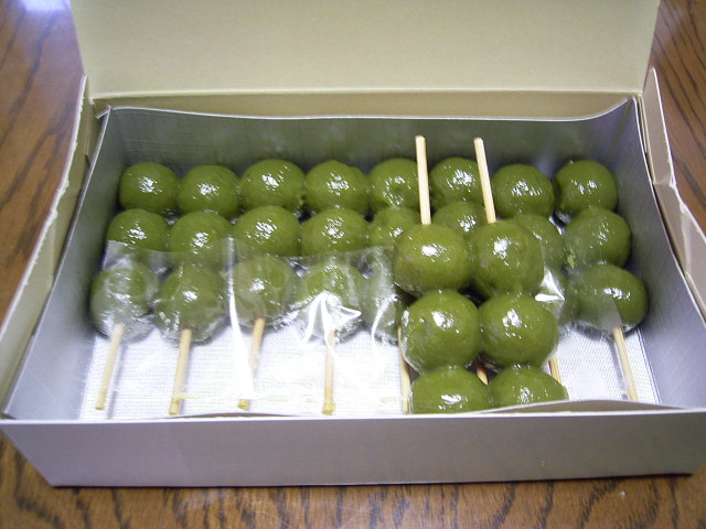 茶団子をたべながら茶を飲むと…緑×緑だね(笑)