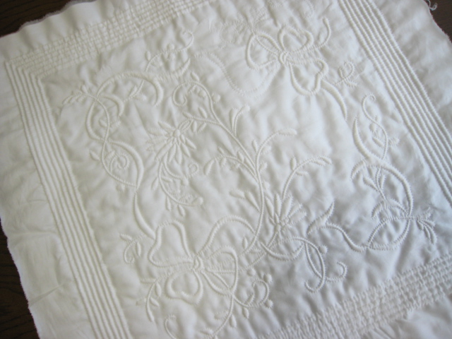 私は今 ずーと前にキルトだけになってた作品が2枚あり それをチクチク少しずつやっています