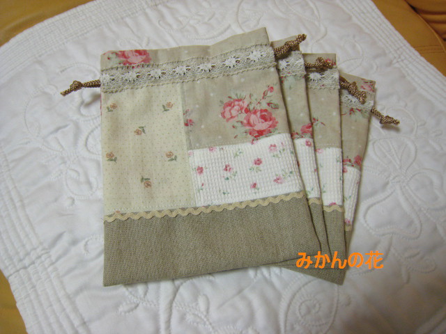 ミニ巾着が今のところ4枚出来ました。