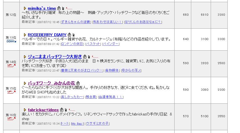 ただ今15位です。いつも本当にありがとう
