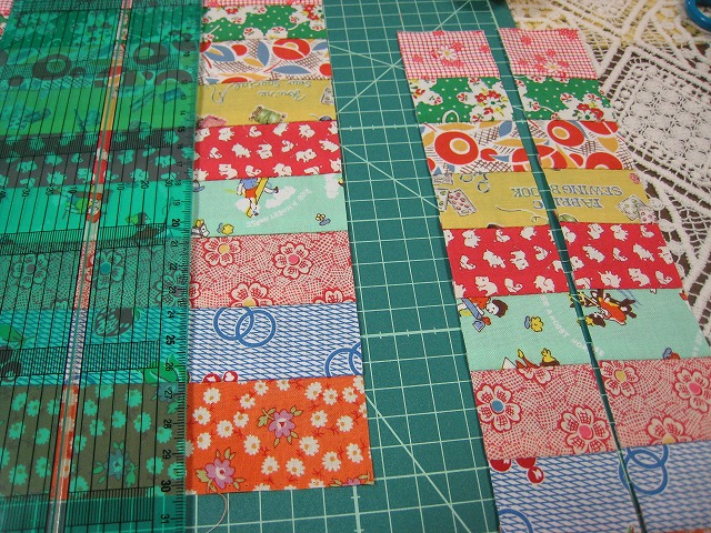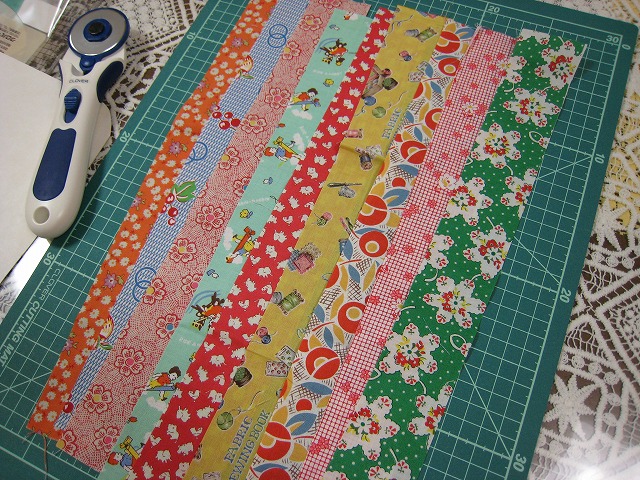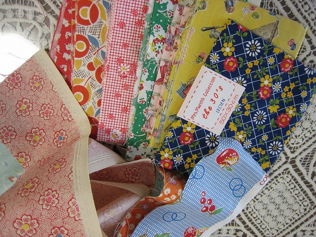 右端の紺の生地以外ははぎれなんだけど、沢山もらったので使ってみようかなと思ってね。