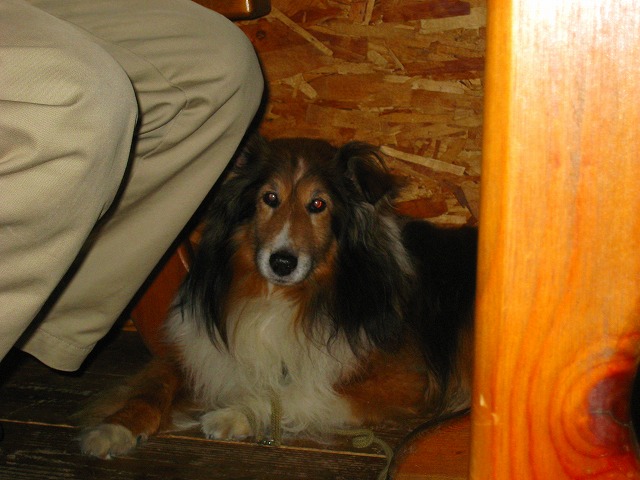 ☆言いつけを守ってテーブルの下でおとなしくしているロッキー