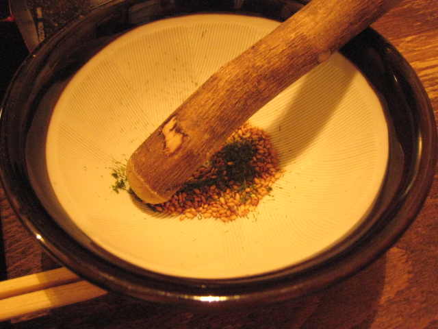 金ごまを擂ってお鍋のだしを加えていただきます。