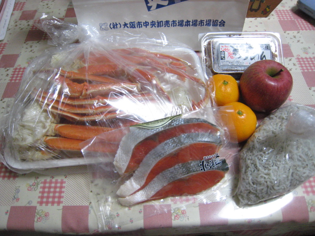 リンゴとみかんはお土産に頂きました。帰りに実家に寄って、父の大好物の生かますと、ちりめん雑魚と、