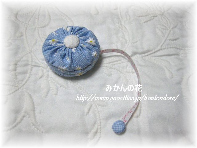 ヨーヨーキルトの真ん中の白いボタンを押すとメジャーが引っ込みます。