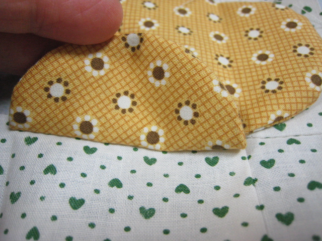 これはクローバーの丸い部分に裏布を縫い合わせて