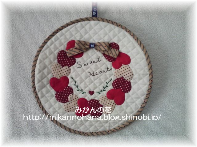 部屋の片隅に飾ってあるハートのミニタペストリー