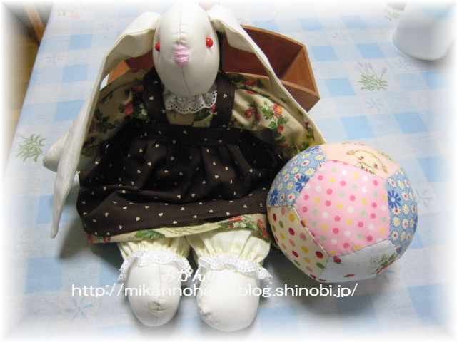 バニーちゃんのエプロン作り開始。