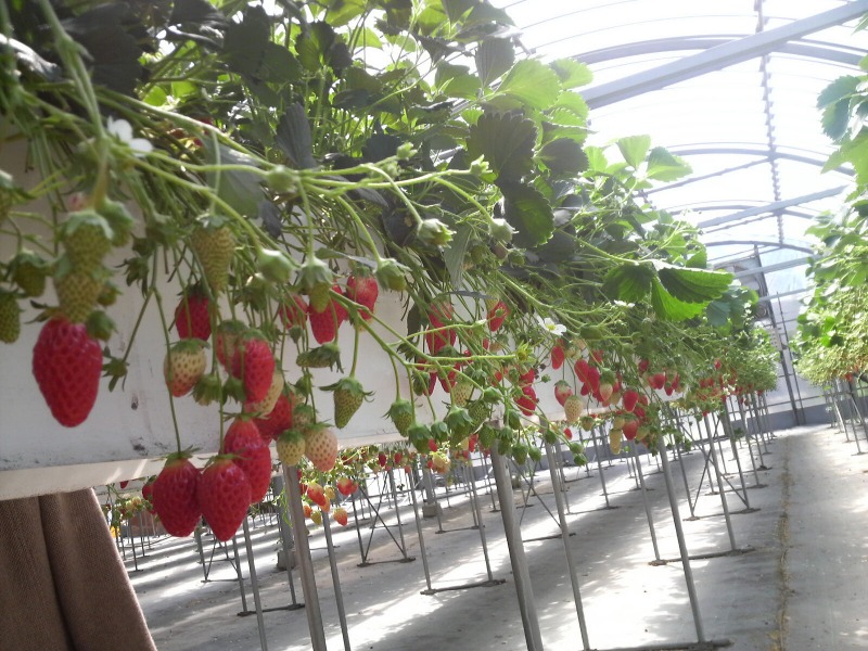 地面に成ってるイチゴハウスとこう言った上になってるハウスとありました。