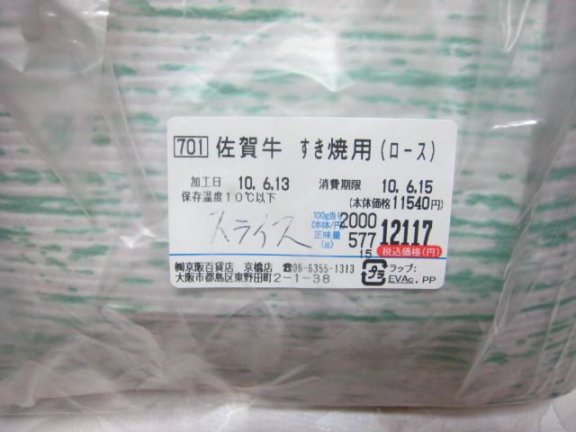 100g2000円の佐賀牛です( ̄¬ ̄) ジュル・・・