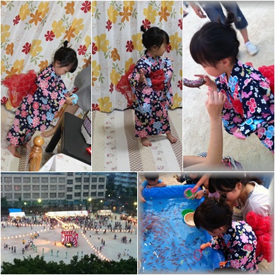 のんちゃんは金魚すくいや、ヨーヨーすくいや