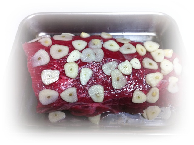 ニンニクとお酒にしばらく付け込んで、焙り焼きをして粗熱を取って