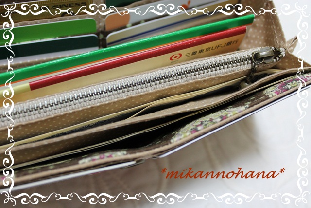 お通帳やレシートが入れられるスペースとファスナーの所は小銭入れで
