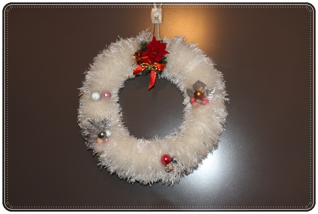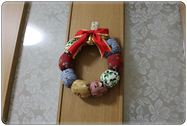 リビングのドア飾りこれは10年も前に作ったパフのリース