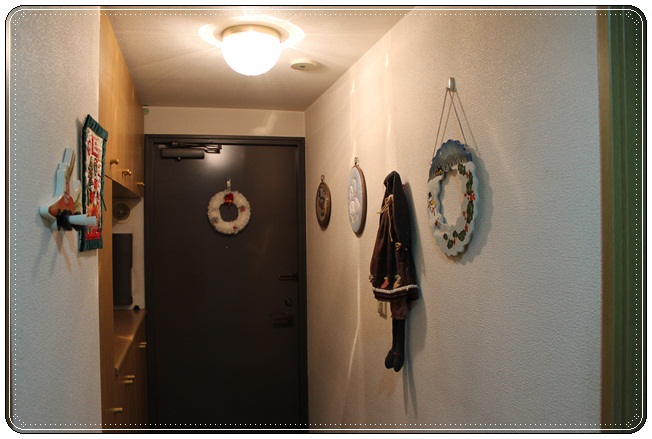 玄関の外の飾りはまだマンションの工事が終わってないので