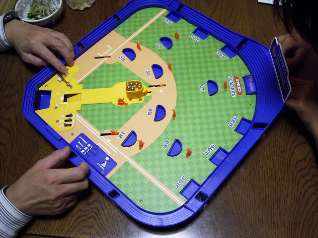 そんな時、珍しく三女のみーちゃんが、「パパ、遊んで」と持ってきたのがこのボードゲーム、野球盤です。
